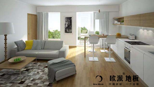 地板腳感好。眾所周知,木地板以其腳感好的特點深受消費者的喜愛,廣泛運用到客廳和臥室的裝修中,開放式廚房與客廳餐廳連成一片,鋪設木地板讓身處在廚房的人腳上更舒適。